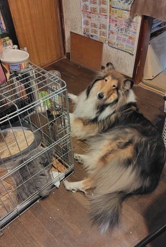 ねこやあるじ、こと、西田です。 今日はちょっと、ブログに書いたけど見せてない子との写真を。   家に来て早々、こんだけ大きい顔がキャリーに顔つっこんだら、そりゃびっくりするよねー。 エマはラフコリー7歳の♀でございます。 今は平気 今は、すっかり平気です。 あまり積極的に近寄りはしないけど、横になっているエマの脇を、ナヴィたんが駆けていきます。 慣れてくれてよかった。   タグ: #ねこや #柏 #ナヴィ #エマ #ラフコリー #ブリティッシュロングヘア #犬と猫 #仲良し #保育士 #ペット         ほぐし処 ねこや 住所 〒277-0042 千葉県柏市逆井4丁目24-36 アクセス 逆井駅より徒歩9分 電話番号 04-7113-4346 (10:00~21:00) 営業時間 11:00~21:00 (完全予約制) 定休日 木曜日(祝日は営業、翌日お休み) 当店facebookはこちら↓ http://bit.ly/1TqmW8d